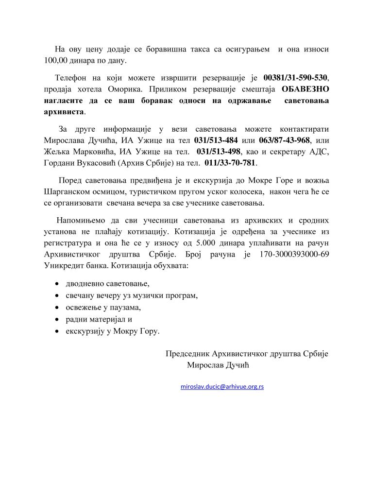 У вези са организацијом Међународног архивског саветовања "Тара 2016" које се одржава од 12. до 14. октобра 2016. године у Хотелу "Оморика" на планини Тари, резервацијом смештаја и др. Архивистичко друштво Србије упућује допис архивским и сродним установама.