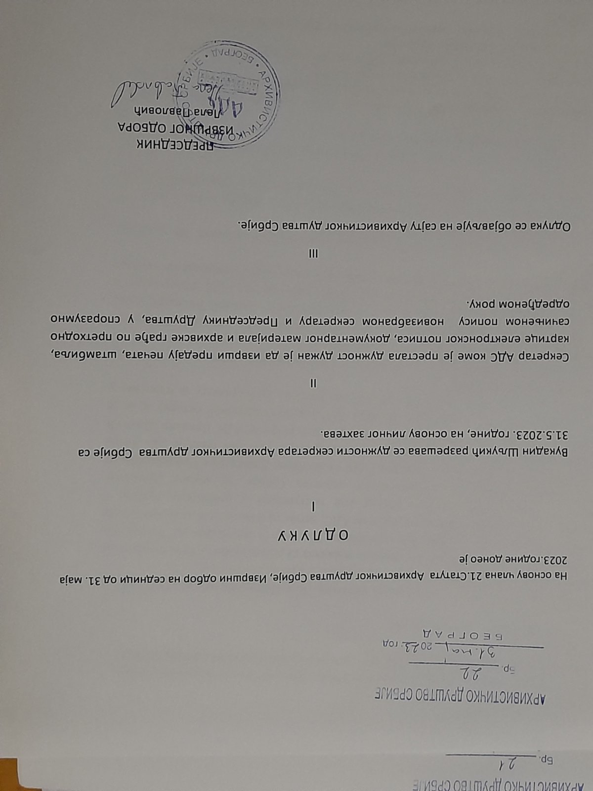 I У том смислу, разрешен је дужности секретар АДС Вукадин Шљукић, архивист из Државног ахрива Србије закључно на дан 31. мај 2023. године. Одлука